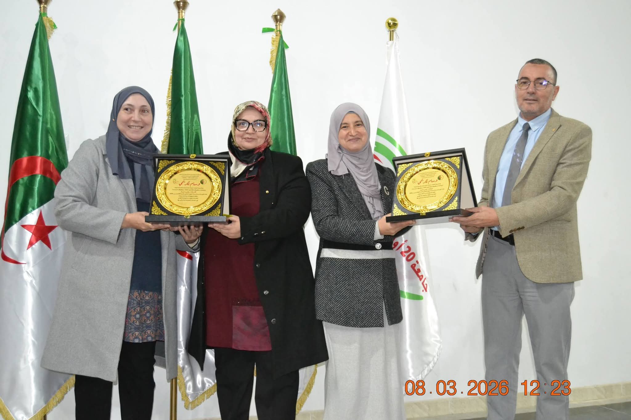 في أجواء مفعمة بالتقدير والاعتزاز، وبمناسبة اليوم العالمي للمرأة المصادف لـ 08 مارس من كل سنة، احتضنت قاعة المحاضرات الكبرى "عبد الحميد مهري" صبيحة اليوم الأحد 08 مارس 2026، احتفالية بهيجة نظمتها لجنة الخدمات الاجتماعية لجامعة سكيكدة ، تكريماً للعنصر النسوي بالأسرة الجامعية من أستاذات، موظفات وعاملات