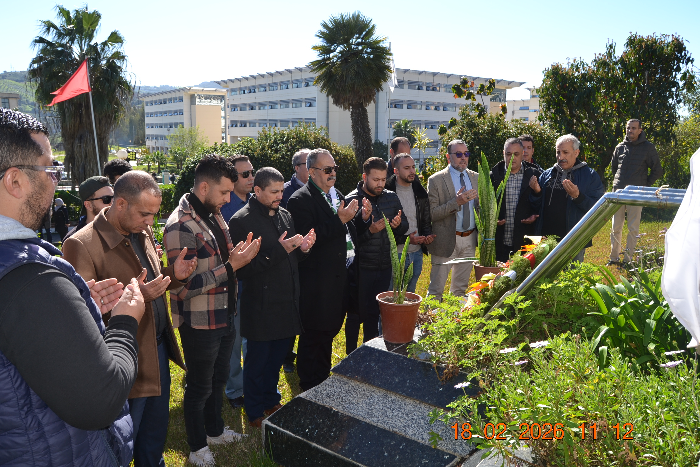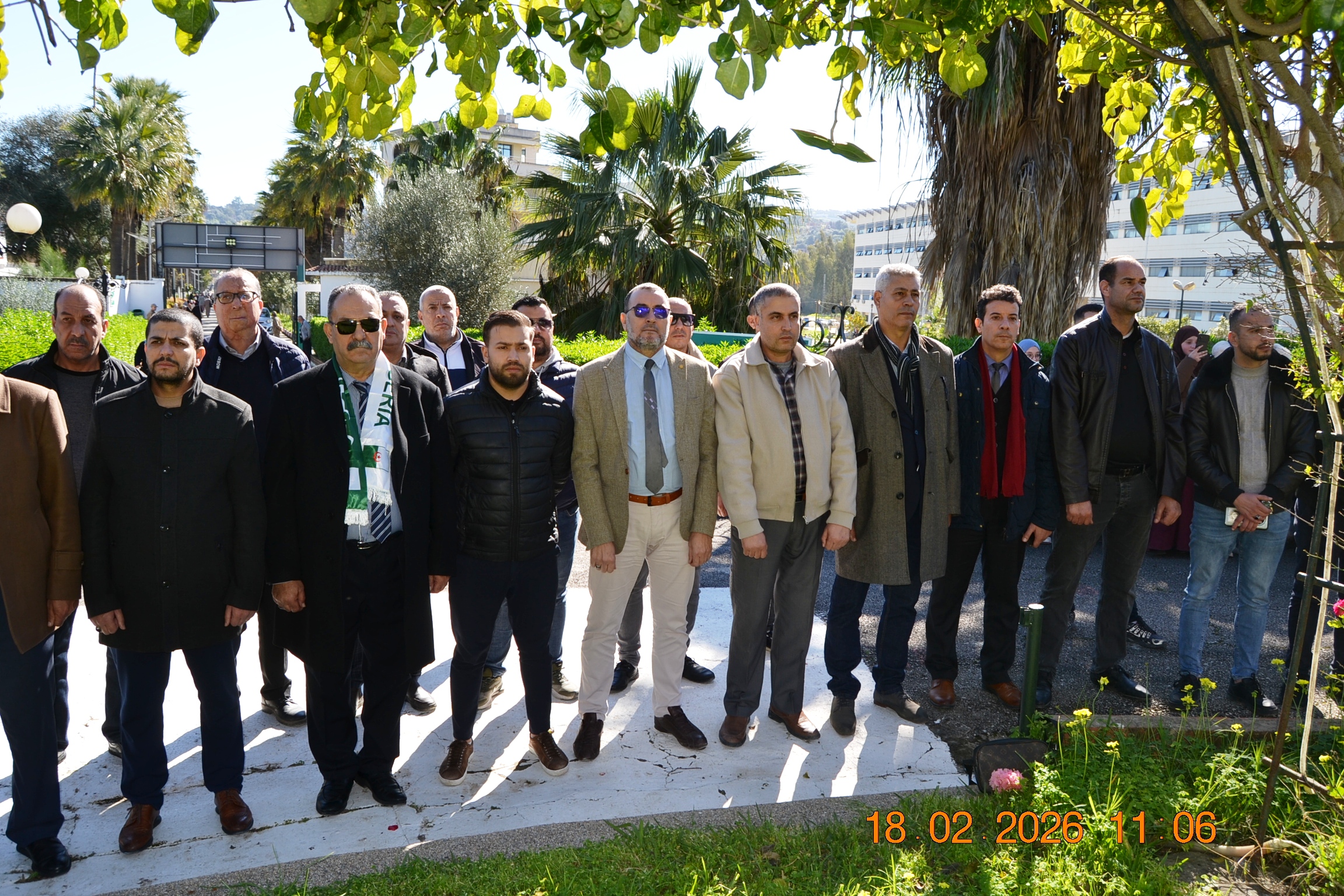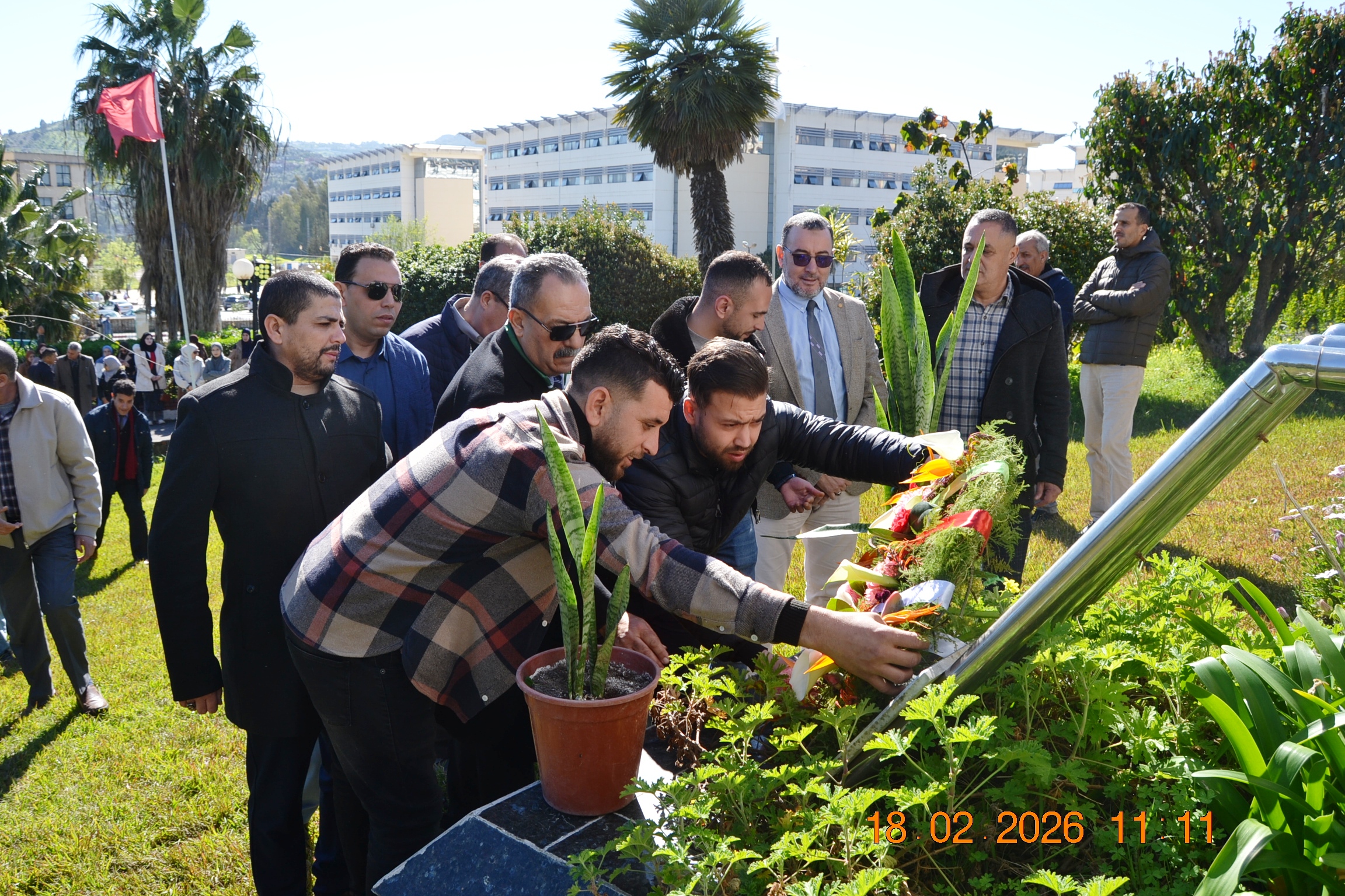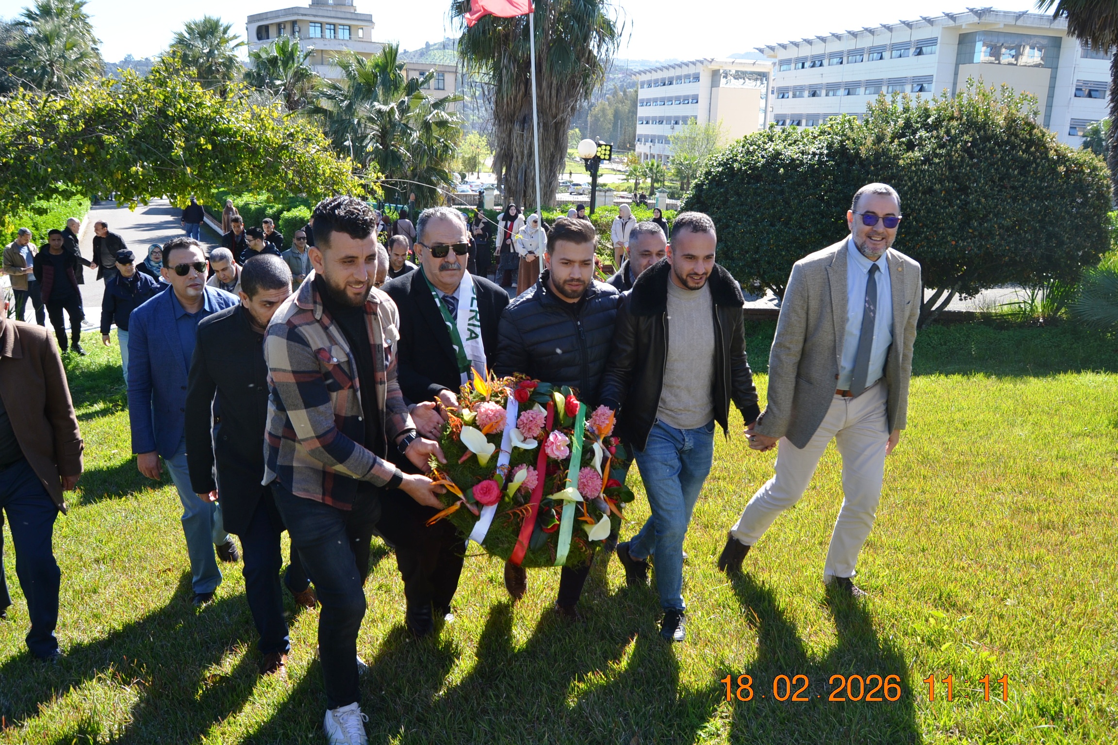 تحت شعار " وفاء لعهد الشهداء " وفي إطار إحياء المناسبات التاريخية ، و الأيام الوطنية ، وبمناسبة إحياء ذكرى اليوم الوطني للشهيد المصادف ل 18 فيفري من كل سنة، أشرف صبيحة يوم الأربعاء 18 فيفري 2026 على الساعة 11:00صباحا السيد مدير الجامعة: البروفيسور بوفندي توفيق رفقة كل من الطاقم الإداري للجامعة ،ممثلي عن النقابات والتنظيمات الطلابية و النوادي العلمية المعتمدة بالجامعة على الإستماع للنشيد الوطني الجزائري و الوقوف دقيقة صمت والترحم على أرواح شهدائنا الأبرار بقراءة الفاتحة ووضع إكليل من الزهور على النصب التذكاري للجامعة .