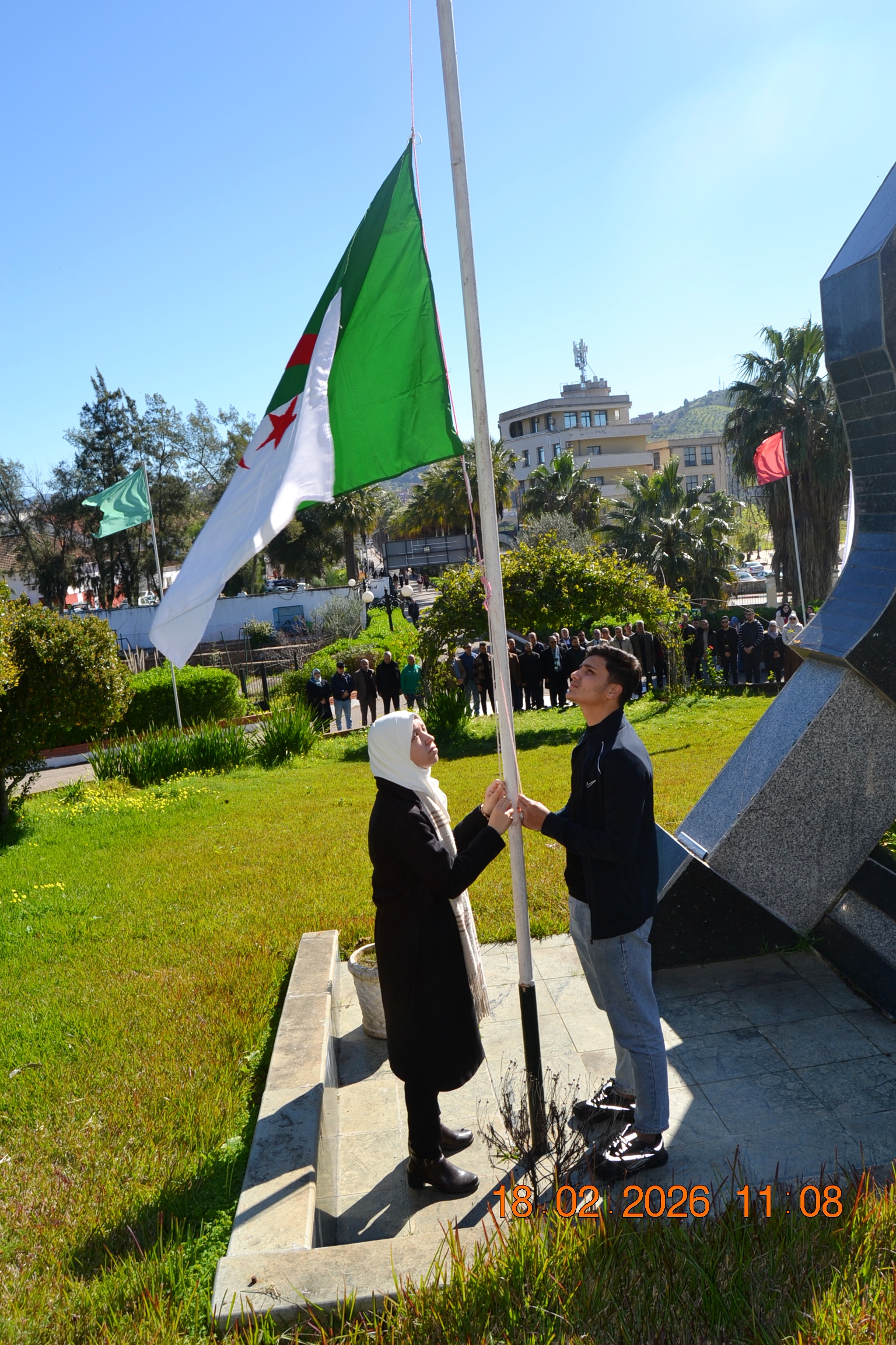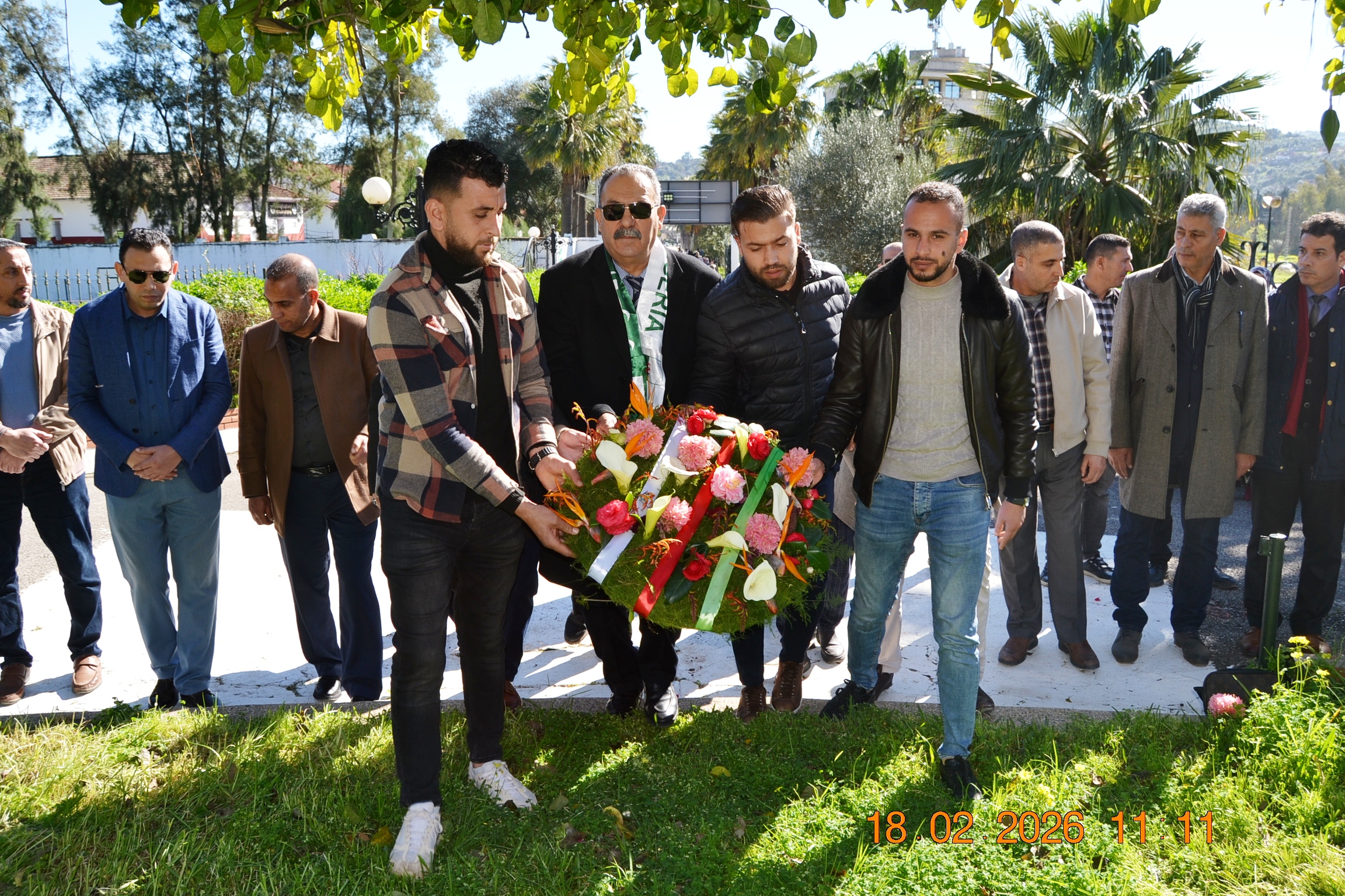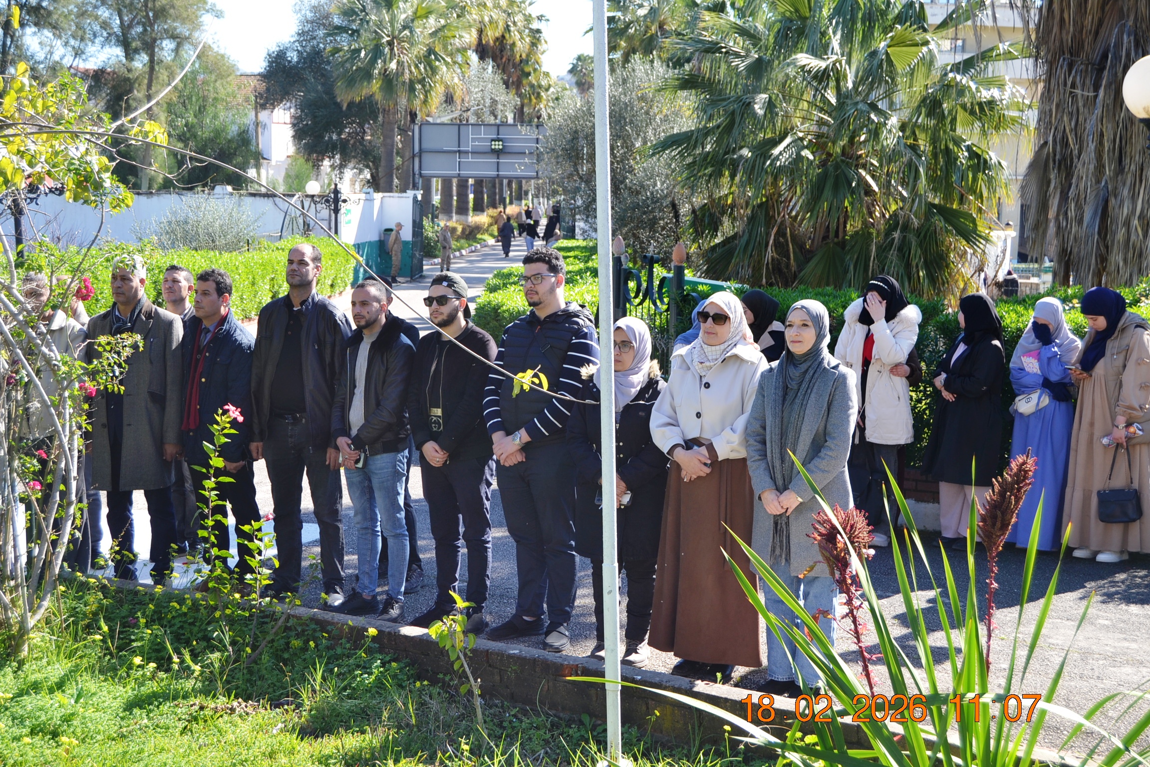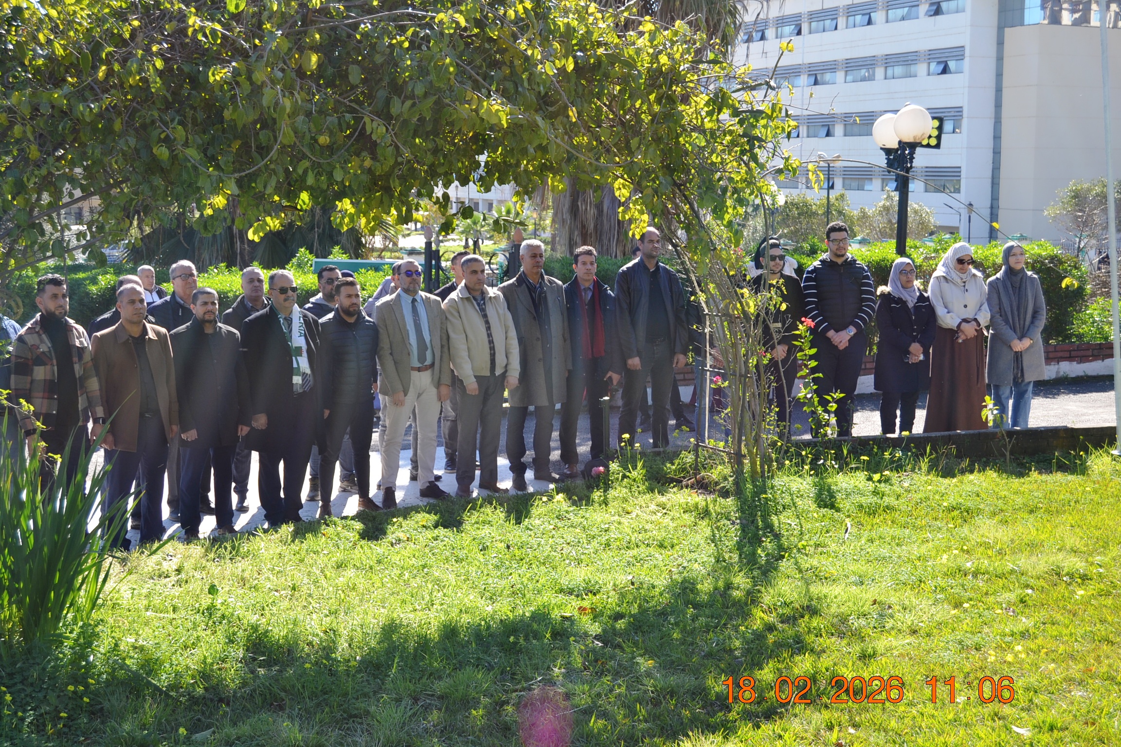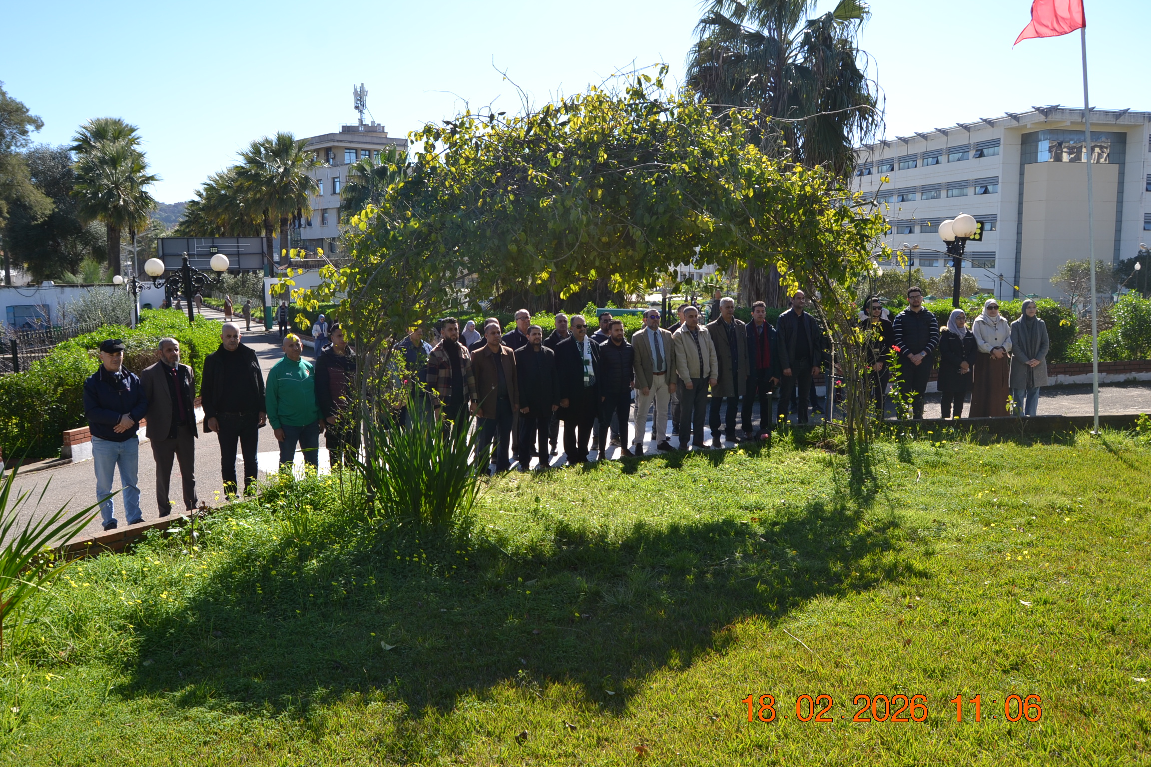 تحت شعار " وفاء لعهد الشهداء " وفي إطار إحياء المناسبات التاريخية ، و الأيام الوطنية ، وبمناسبة إحياء ذكرى اليوم الوطني للشهيد المصادف ل 18 فيفري من كل سنة، أشرف صبيحة يوم الأربعاء 18 فيفري 2026 على الساعة 11:00صباحا السيد مدير الجامعة: البروفيسور بوفندي توفيق رفقة كل من الطاقم الإداري للجامعة ،ممثلي عن النقابات والتنظيمات الطلابية و النوادي العلمية المعتمدة بالجامعة على الإستماع للنشيد الوطني الجزائري و الوقوف دقيقة صمت والترحم على أرواح شهدائنا الأبرار بقراءة الفاتحة ووضع إكليل من الزهور على النصب التذكاري للجامعة .