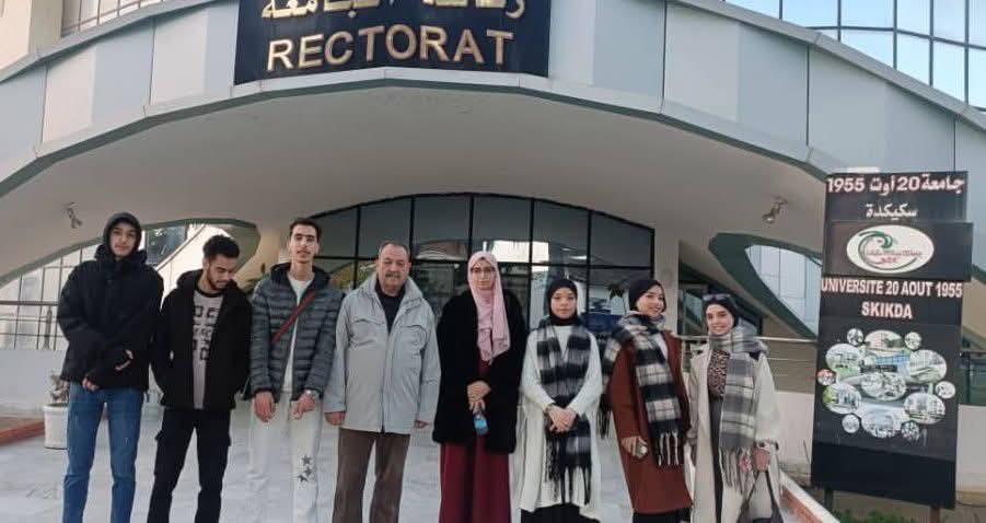 السيد مدير الجامعة في وقفة دعم لطلبة نادي APEX قبل انطلاقهم للمسابقة الوطنية للأفكار المبتكرة للمؤسسات الناشئة بجامعة بومرداس