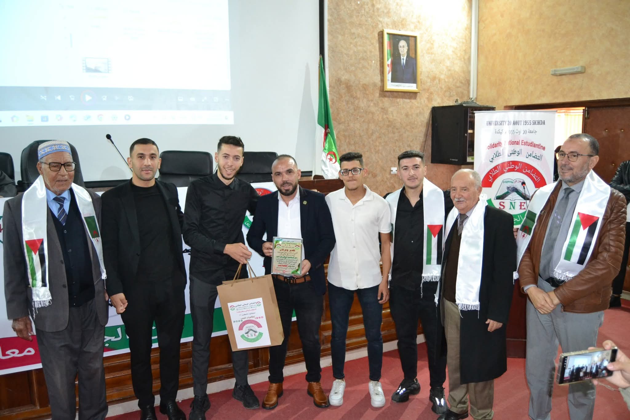 وبحضور كل من السادة: ، ممثل عن مديرية المجاهدين ، ممثل عن مدير الخدمات الجامعية سكيكدة ، عضو المجلس الأعلى للشباب ، عميد كلية الحقوق و العلوم السياسية ، عميدة كلية التكنولوجيا ، مدير معهد البيتروكيمياء ، اساتذة قسم العلوم الإنسانية ، إطارات الجامعة ، إطارات مديرية الخدمات الجامعية ،النوادي العلمية و التنظيمات الطلابية المعتمدة بالجامعة وجمع غفير من الطلبة .