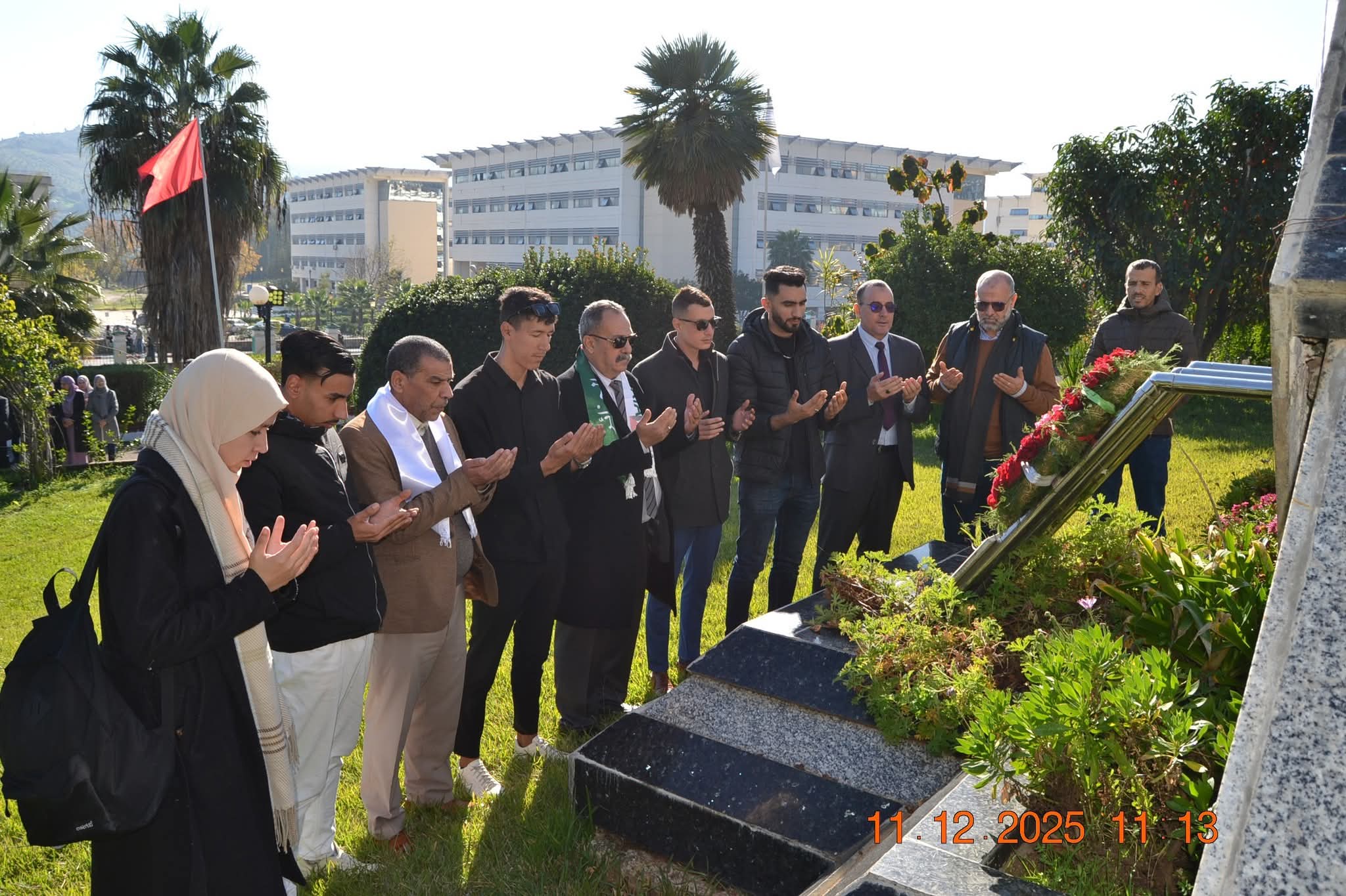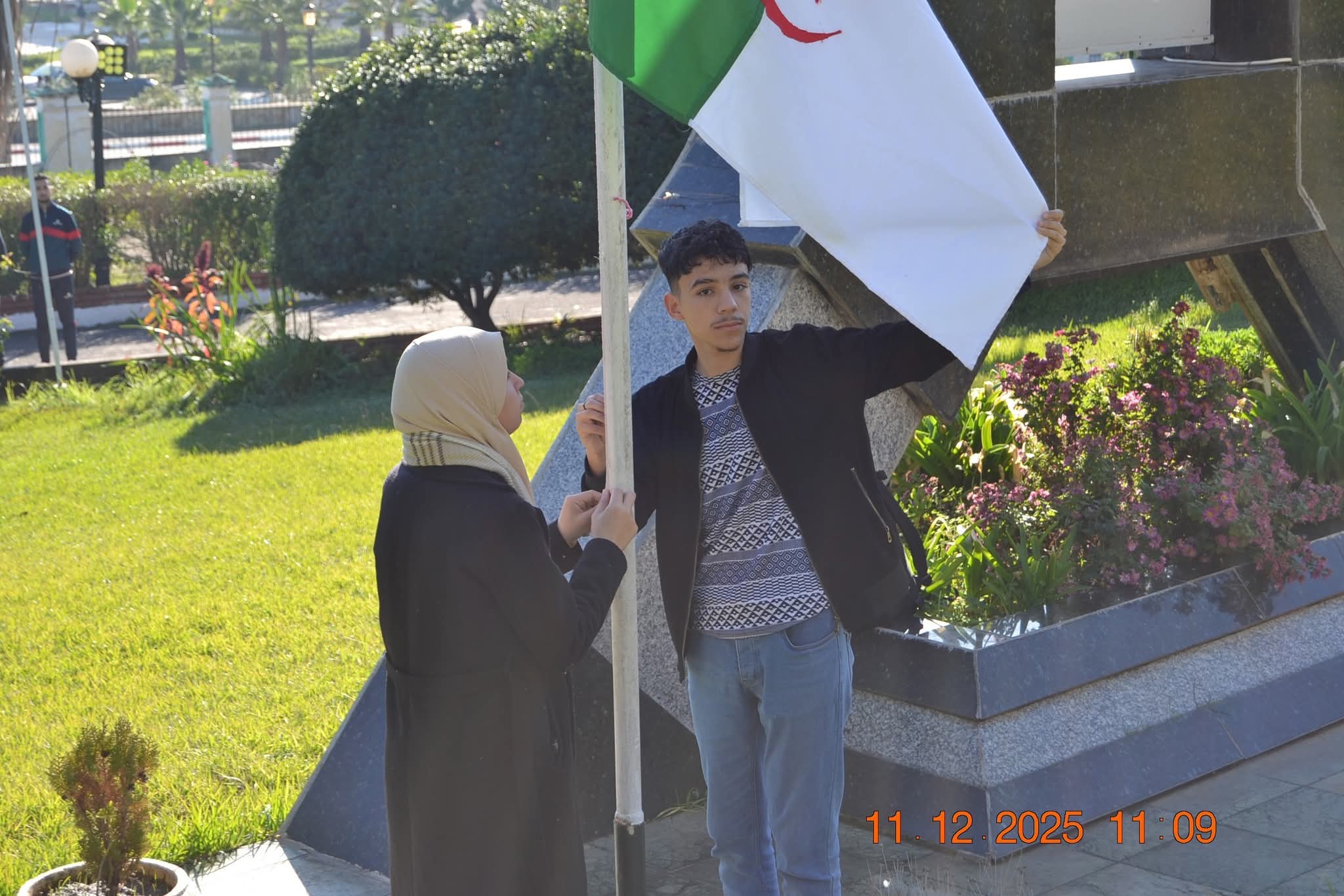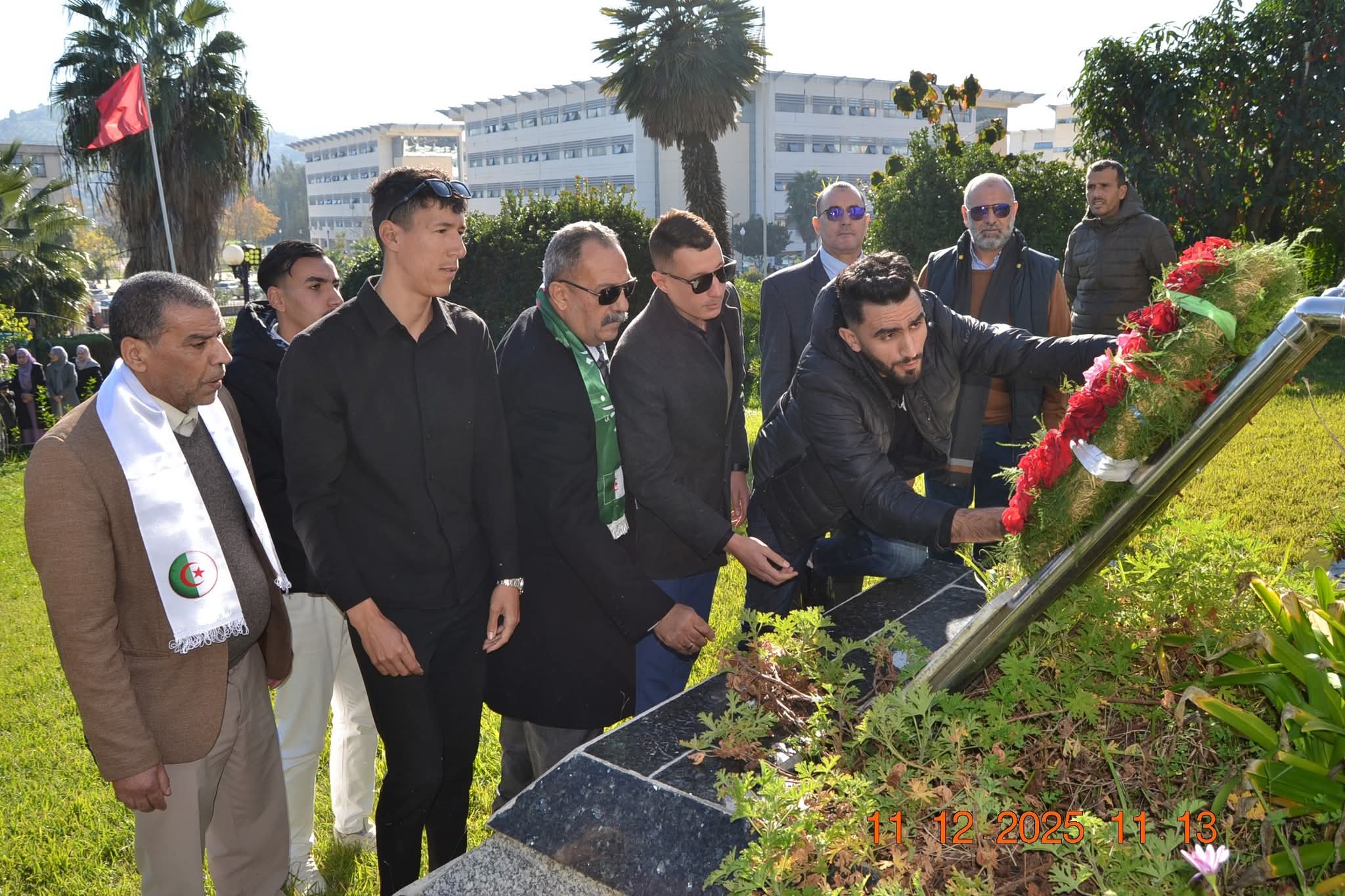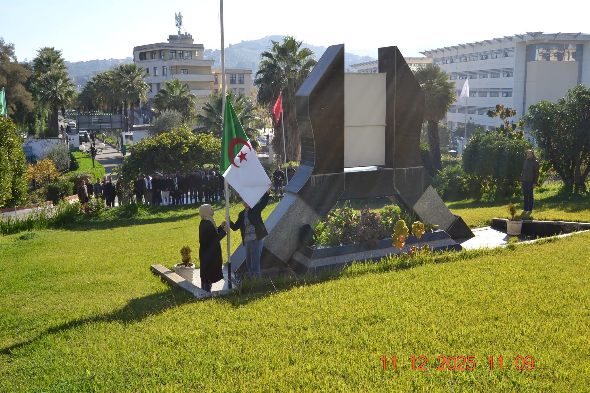 في إطار الإحتفالات المخلدة للذكرى (65) لمظاهرات الشعب المصادف للحادي عشر من شهر ديسمبر من كل سنة ، أشرف صبيحة يوم الخميس11 ديسمبر 2025 على الساعة 11:00 صباحا ، السيد مدير جامعة 20 أوت 1955 سكيكدة البروفيسورتوفيق بوفندي على مراسيم إحياء هذه الذكــرى رفقة كل من الطاقم الإداري للجامعة ، ومختلف الشركاء الإجتماعيين بالجامعة من النقابات و التنظيمات طلابية و النوادي العلمية المعتمدة بالجامعة ، و ثلة من الأساتذة و الموظفين والطلبة ، من خلال الوقوف تحية وإجلال للنشيد الوطني الجزائري و قراءة الفاتحة ووضع إكليل من الورود بالنصب التذكاري للجامعة ترحما على أرواح شهدائنا الأبرار.