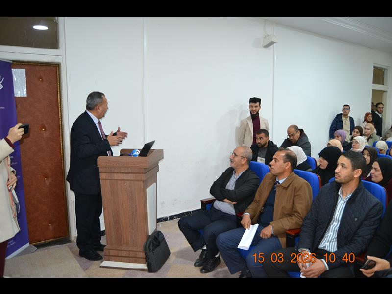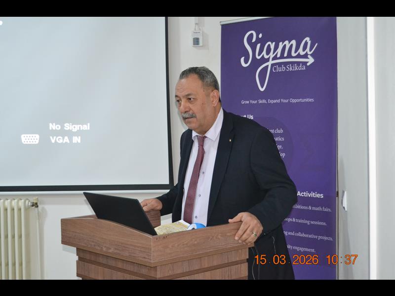 في أجواء مفعمة بالشغف العلمي والابتكار، وبمناسبة اليوم العالمي للرياضيات المصادف لـ 14 مارس من كل سنة ، احتضنت قاعة المناقشات (B) بكلية العلوم بجامعة 20 أوت 1955 سكيكدة، صبيحة اليوم الأحد 15 مارس 2026، افتتاح فعاليات الندوة العلمية الموسومة بـ "Pi day'26 – Mathematical Innovations & Practical Skill" ، وقد استهلت التظاهرة بكلمة ترحيبية وتوجيهية قيمة ألقاها السيد مدير الجامعة، البروفيسور بوفندي توفيق،والذي رحب من خلالها بكافة الأساتذة والطلبة والضيوف، مؤكدا على الأهمية المحورية لعلوم الرياضيات في صياغة المستقبل التكنولوجي، ومشيدا بالدور الريادي الذي تلعبه كلية العلوم وقسم الرياضيات في تعزيز ثقافة الابتكار والبحث التطبيقي.