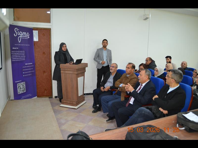 - الندوة التي نظمها قسم الرياضيات بالتنسيق مع النادي العلمي الطلابي "سيغما" (Sigma)، شاهدت حضور كل من السيدات و السادة : عميد كلية العلوم، نواب العميد، رؤساء الأقسام، رئيس الهيئة العلمية للكلية، ومدير حاضنة الأعمال بالجامعة، بالإضافة إلى ثلة من الأساتذة والطلبة الباحثين.