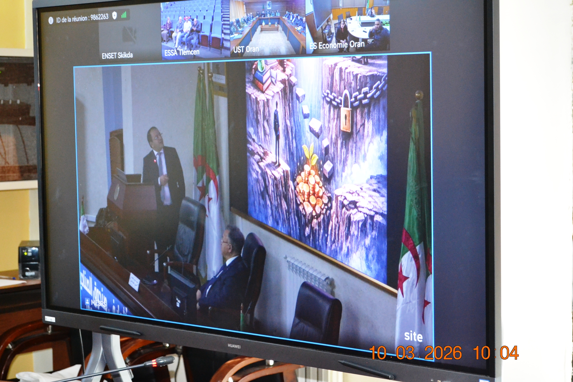 شارك السيد مدير جامعة 20 أوت 1955 سكيكدة ، البروفيسور توفيق بوفندي ، يوم الثلاثاء 10 مارس 2026، بقاعة الإجتماعات لرئاسة الجامعة ، عبر تقنية الحاضر عن بعد ، في أشغال الندوة الوطنية حول مزايا الاستثمار في صندوق الصناديق (شركة الاستثمار المالي لجامعة الجزائر 3)، التي أشرف على افتتاحها وزير التعليم العالي والبحث العلمي الاستاذ كمال بداري بقاعة المحاضرات بمقر الوزارة، بحضور رئيس لجنة تنظيم عمليات البورصة ومراقبتها، وبمشاركة مديري المؤسسات الجامعية عبر تقنية التحاضر عن بعد.
