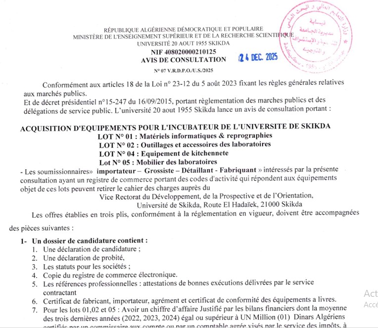 جامعة- سكيكدة ص ب 26 طريق الحدائق - سكيكدة . الجزائر 21000
