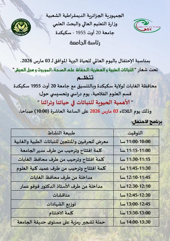 Université 20 août 1955 BP 26. Route d'El Hadaiek - Skikda 21000 – Algérie