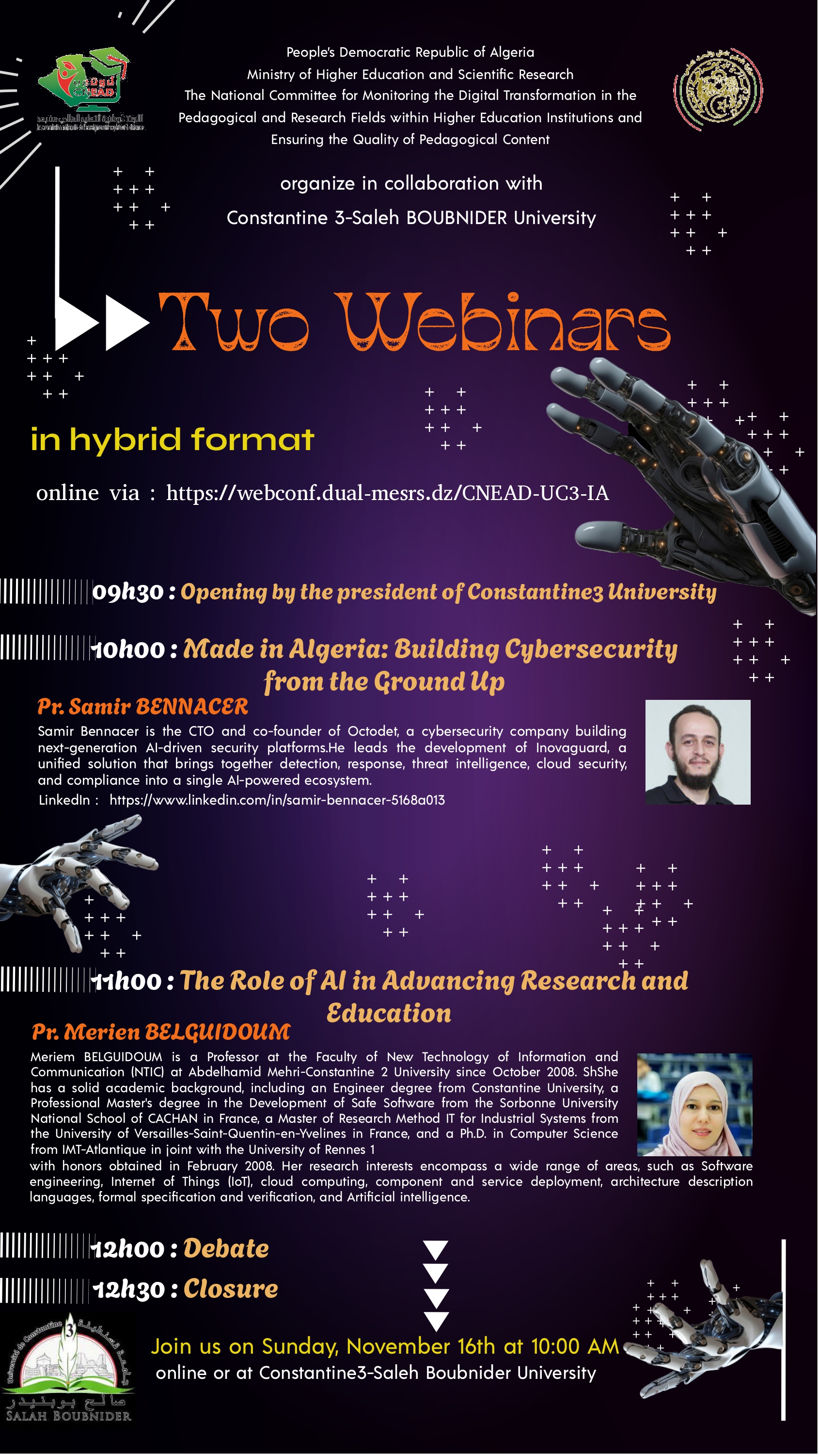 خلية الذكاء الإصطناعي التابعة  للجنة الوطنية للتعليم عن بعد (CNEAD) تنظم الندوة الإلكترونية الثالثة
