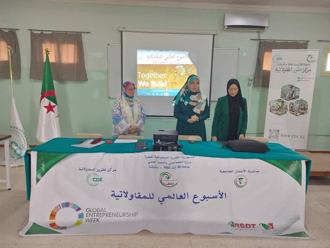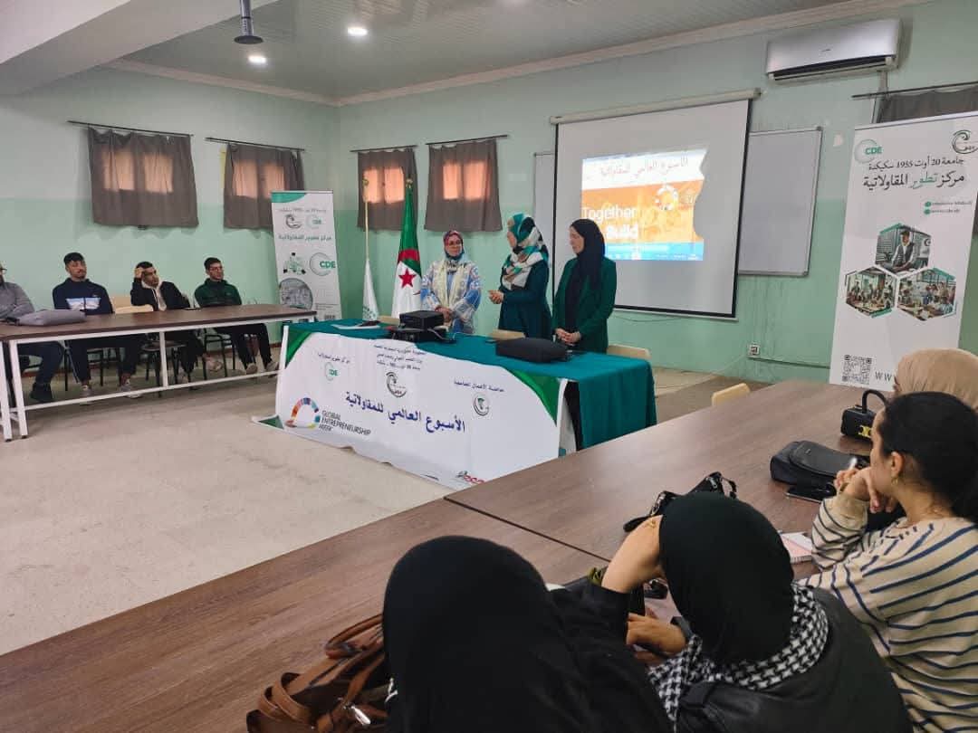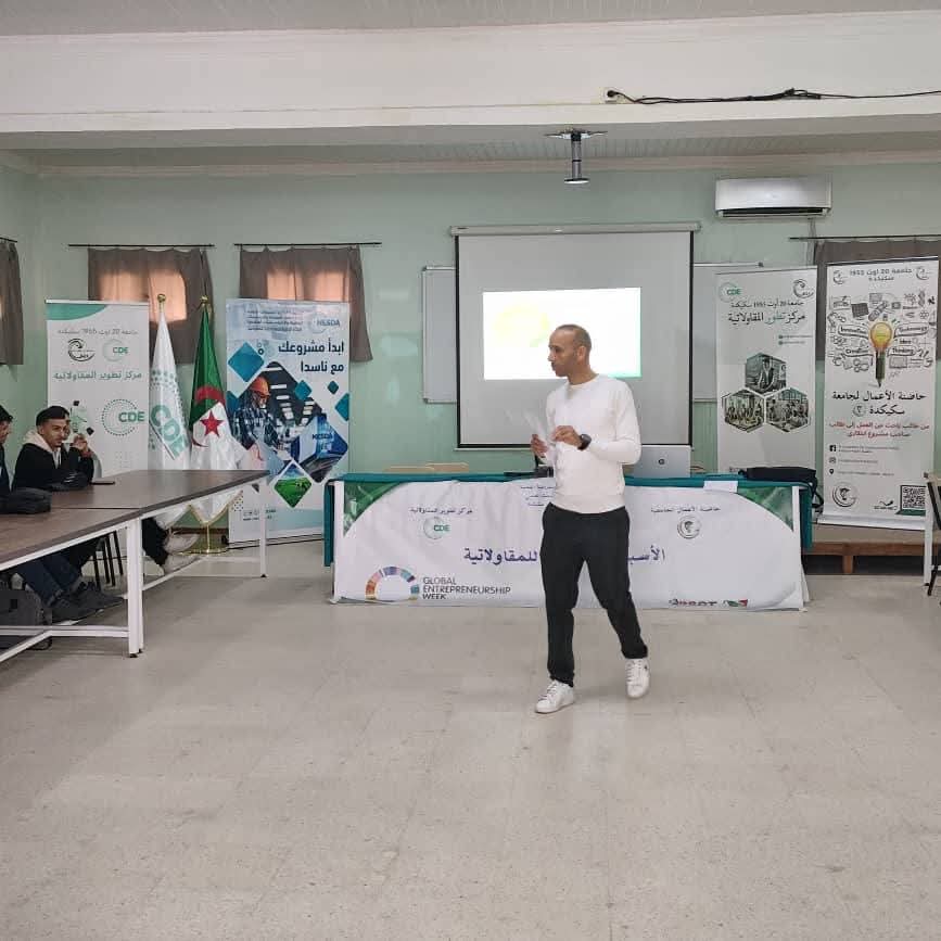 تواصلت لليوم الثاني على التالي فعاليات الأسبوع العالمي للمقاولاتية بجامعة سكيكدة ، تحت إشراف السيد مدير الجامعة البرفيسور بوفندي توفيق وبتأطير وتنظيم كل من مركز تطوير المقاولاتية وحاضنة الاعمال الجامعية، أين تم تقديم جملة من الورشات والمحاضرات والتي تهدف إلى تعزيز المعارف التطبيقية لدى الطلبة وتزويدهم بآليات حقيقية لإنشاء مشاريعهم.