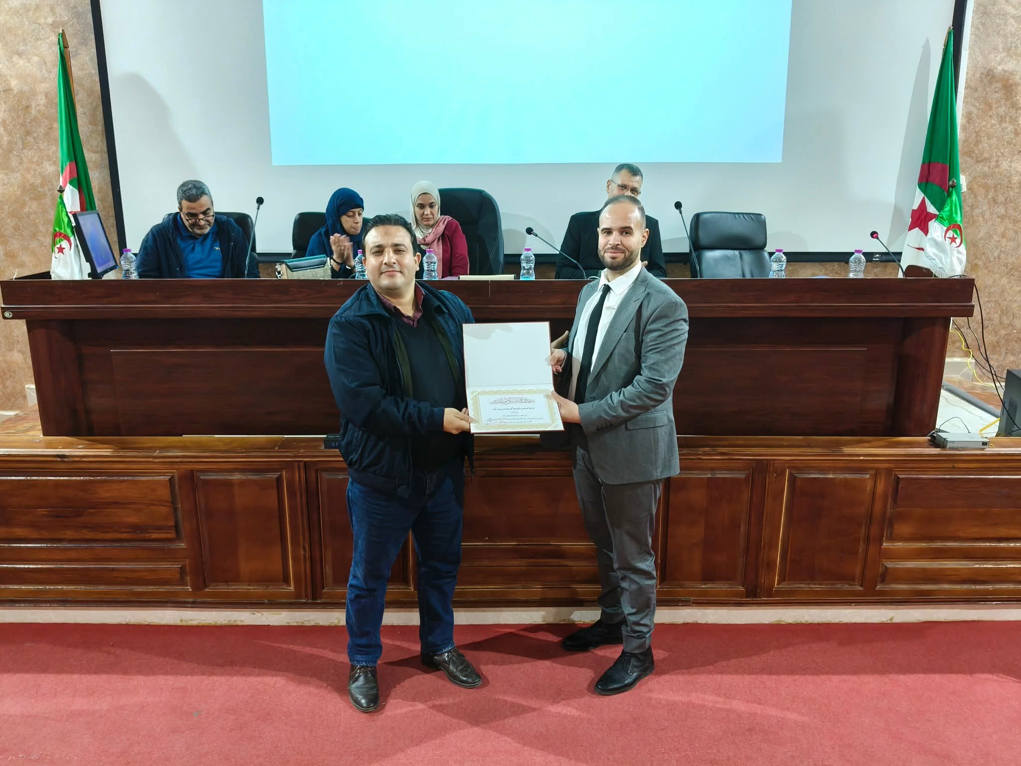 أشرف أمسية اليوم السيد مدير الجامعة  البرفيسور بوفندي توفيق بقاعة المحاضرات  مجمع مسعود بوقادوم على إختتام فعاليات الندوة العلمية حول : الدور البارز لتكامل عمل الهيئات الوطنية لتيسير التجارة الخارجية وتنظيمها من تنظيم قسم العلوم التجارية -كلية العلوم الإقتصادية و التجارية وعلوم التسيير