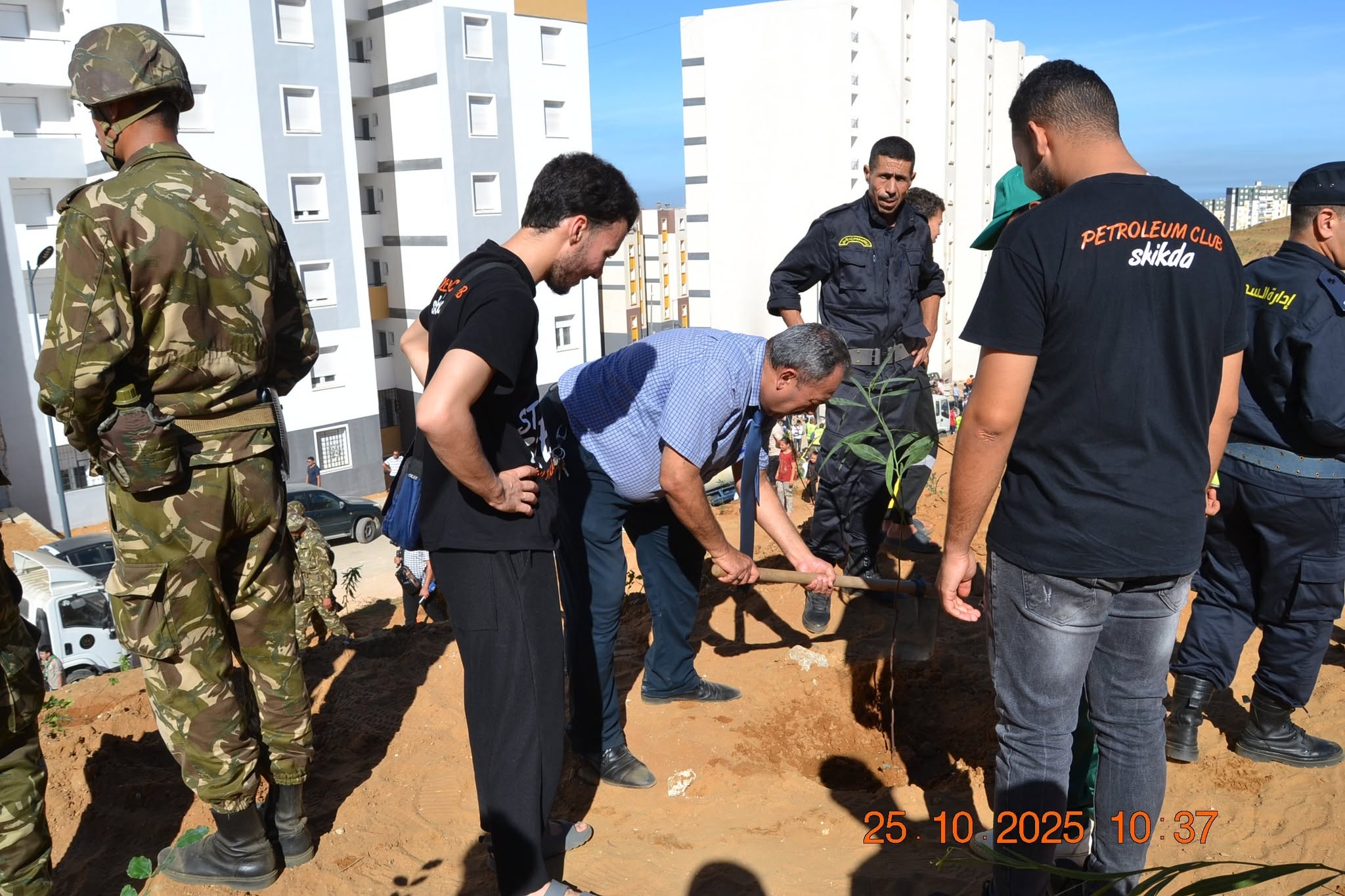 شارك صبيحة اليوم السيد مدير جامعة 20 أوت 1955 سكيكدة البرفيسور بوفندي توفيق رفقة أفراد الأسرة الجامعية في فعاليات الإحتفال بعيد الشجرة الموافق لـ 25 أكتوبر من كل سنة، والحملة الوطنية للتشجير من خلال غرس الأشجار بمنطقة كوسيدار بلدية فلفلة ، وهذا تحت إشراف والي الولاية السيد السعيد أخروف برفقة السيد رئيس المجلس الشعبي الولائي، و بحضور السيدات والسادة: أعضاء اللجنة الأمنية ، الأمين العام للولاية، رئيس دائرة سكيكدة، رئيس بلدية فلفلة، الأسرة الثورية، مدير وإطارات محافظة الغابات، مديري وإطارات المجلس التنفيذي للولاية ، أعضاء المجلس الأعلى للشباب، مديري وإطارات الإدارات والمؤسسات العمومية، الأسرة الاعلامية، وبمشاركة المواطنين والجمعيات ومختلف الفاعلين في المجتمع المدني .