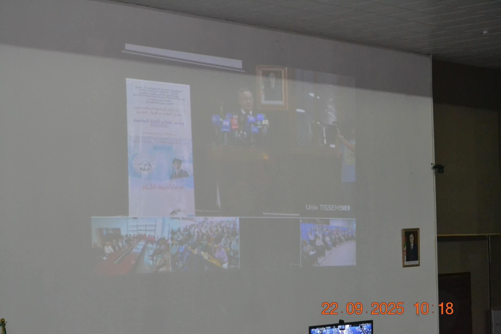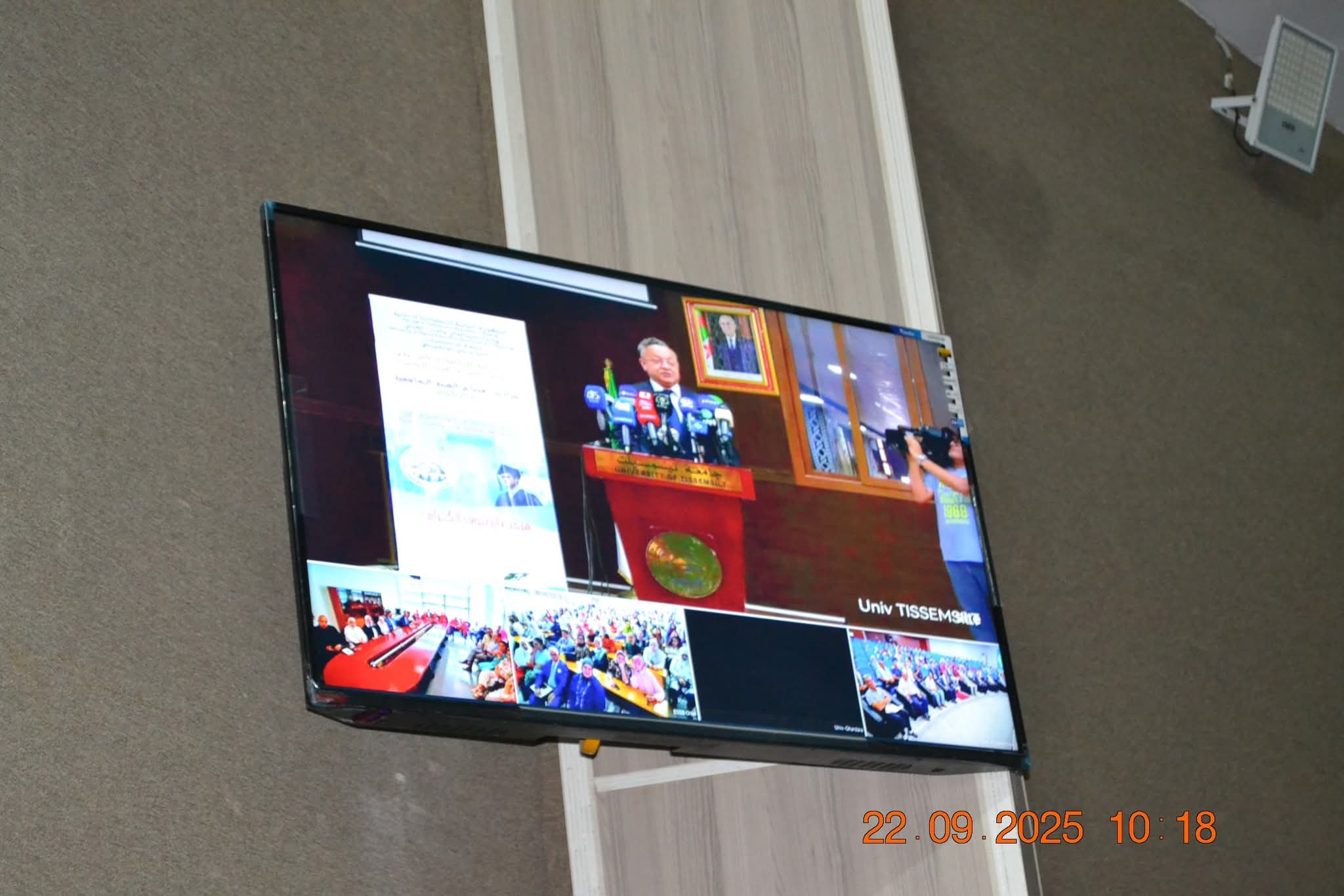 انطلقت فعاليات الافتتاح الرسمي بالتزامن مع البث المباشر من جامعة تيسمسيلت، بقراءة آيات بينات من القرآن الكريم، تلاه الوقوف والإنصات للنشيد الوطني الجزائري ، حيث تابع الحضور مجريات الإفتتاح الرسمــي للسنـة الجامعيـة 2025-2026، عبر البث المباشر، بكلمة ترحيبية من طرف كل من مدير جامعة تيسمسيلت ، ووالي ولاية تيسمسيلت ، وكانت مساهمة السيد وزير التعليم العالي والبحث العلمي